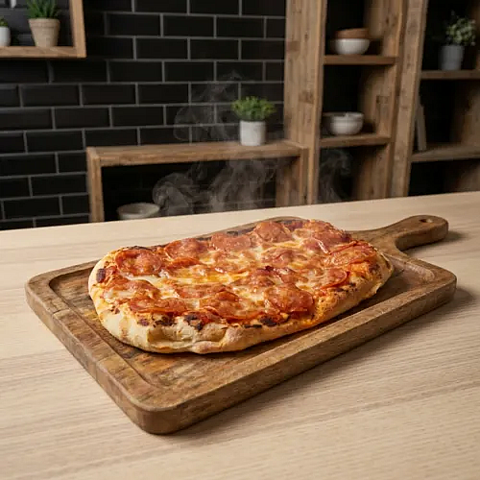 Римская пицца размером 20*30 см с пикантной колбаской пепперони и сыром моцарелла