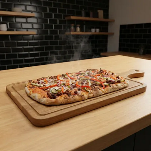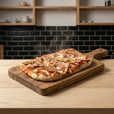 Римская пицца размером 20*30 см с куринным филе, беконом, шампиньонами, сыром моцарелла