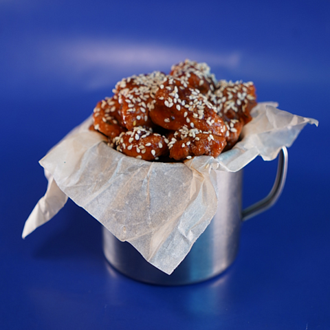 Кусочки филе обжаренные в панировке, вы можете полить соусом на выбор: