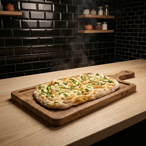 Римская пицца 20*30 см с креветками, фетой и зеленой сальсой
